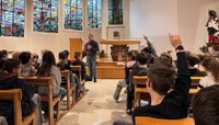 Les jeudis 13 et 20 novembre, le Père Cédric est venu rencontrer les élèves de cinquième pour répondre à toutes leurs questions sur la messe.