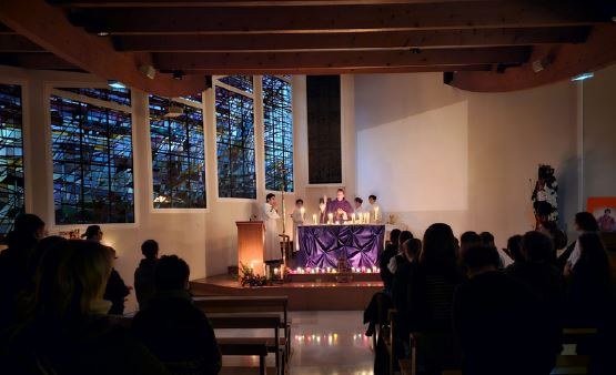 Messe à la bougie célébrée par le Père Cédric