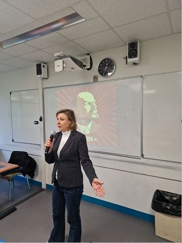 Née et ayant grandi en République populaire de Pologne, une dictature communiste étroitement liée à l’Union des républiques socialistes soviétiques (URSS), Mme Menten a partagé son parcours de vie. En effet, son récit a permis aux élèves de comprendre les réalités d’un régime répressif fondé sur des idéaux d’égalité. Un grand merci à Mme Menten pour ce témoignage précieux et authentique, qui a su donner vie à l’Histoire et nourrir la réflexion de nos élèves.