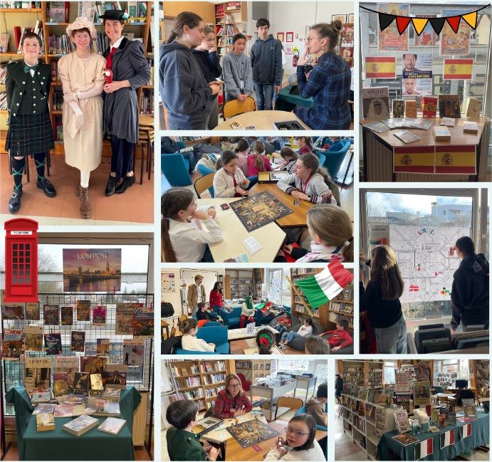 En lien avec les professeurs de langues, le CDI s’est mis aux couleurs de l’Angleterre, de l’Italie, de l’Espagne et de l’Allemagne. En plus d’une sélection d’ouvrages en langues étrangères mise à l’honneur pour chaque pays, les élèves ont pu développer leur créativité à travers des fresques collaboratives et des puzzles géants « Jane Austen » et « Barcelone », et jouer à des jeux de société en anglais.