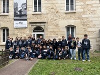 La visite a commencé par une exposition de photographies de Robert Doisneau dans sa ville natale et s'est terminée par un atelier de photomontage.
