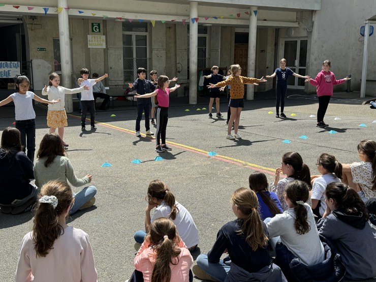 Dans le cadre de leur programme de réflexion humaine et religieuse, les élèves de Seconde ont consacré plusieurs pauses déjeuner à monter une chorégraphie avec les enfants de l’école. Joie des plus grands et des plus petits qui ont présenté leur danse devant leurs camarades et leurs professeurs !