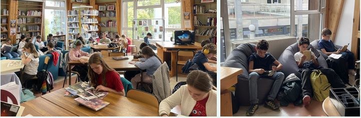 Lieu de travail mais aussi de détente, le CDI est un espace au calme qui permet aux élèves de développer leur curiosité intellectuelle et leur créativité, à travers des outils pédagogiques de qualité et un accompagnement personnalisé.