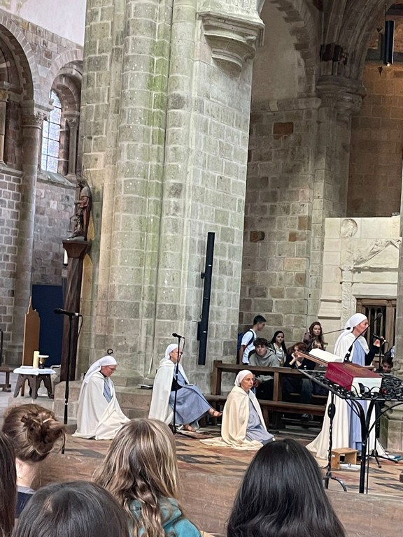 Après avoir gravi les ruelles et les marches, nous sommes arrivés à l’abbaye pour assister à la messe. C’était un moment impressionnant : le silence, la beauté des lieux et la voix du prêtre qui résonnait dans l’abbaye. J’ai retenu une phrase de l’Évangile que le prêtre avait citée : « Pourquoi vois-tu la paille qui est dans l’œil de ton frère, et n’aperçois-tu pas la poutre qui est dans ton œil ? ».